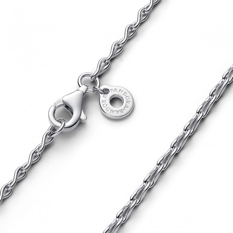 Uma corrente elegante com um simbolismo subtil, o nosso Colar de Corrente Infinito é o parceiro perfeito para a Conta Pendente Cadeado Love de Abrir e Gravar ou para o seu pendente preferido. Cada elo deste colar de prata infinito tem a forma de um laço infinito ligeiramente torcido, criando uma divertida sensação de movimento e simbolizando um amor que durará para sempre. O colar é ajustável em três comprimentos e pode conter um Pendente "O" pequeno, um Pendente "O" Coração ou até 6 contas ou pendentes.