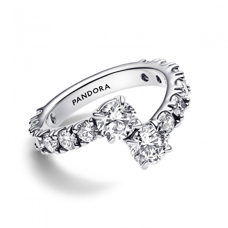 Brilhe com estilo com o Anel Sparkling Overlapping Band em prata da coleção Pandora Timeless. Transmitindo frescura, este anel apresenta uma fila de zircónias transparentes meticulosamente cravadas. O aro sobrepõe-se subtilmente ao centro, com pedras maiores em cada extremidade, formando uma peça central apelativa. Inspirada nos Anéis repletos de brilho da Pandora, esta peça oferece um look arrojado e dimensional. Eleve o seu estilo com este sofisticado anel de prata.