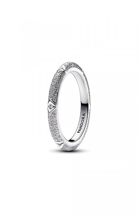 Está tudo nos detalhes com o Anel Pandora ME Texture & Stones. Um aro de prata com perfil em forma de D é pontuado por seis pontos triangulares, cada um com uma pedra brilhante. O resto do aro do anel é adornado com um padrão texturado. Inspirado na textura da areia e no padrão do sol no oceano, este anel delicado e detalhado é uma forma subtil de se destacar.