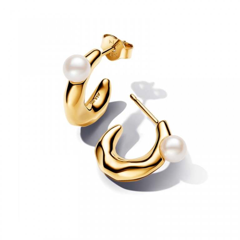 Argolas Pandora com pérolas de cultura de água doce tratadas e formato orgânico