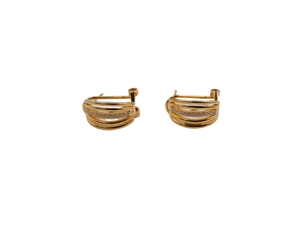 Brincos de prata dourada com zircónias, fecho omega.