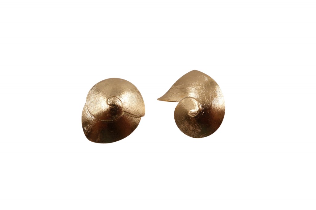 Brincos de prata dourada Bruno da Rocha, de espigão.