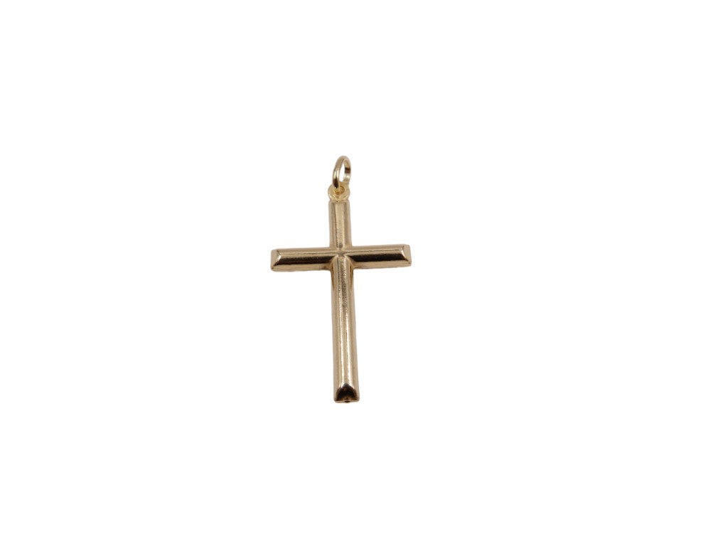 Cruz de prata dourada. Mede 4.5 cm. Peso 2.6 g.