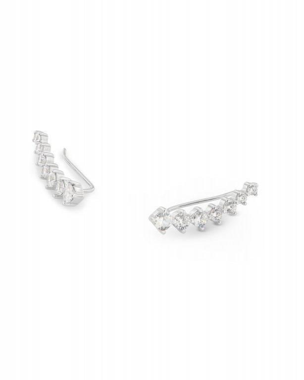 Brincos de prata com zircónias, de espigão.
