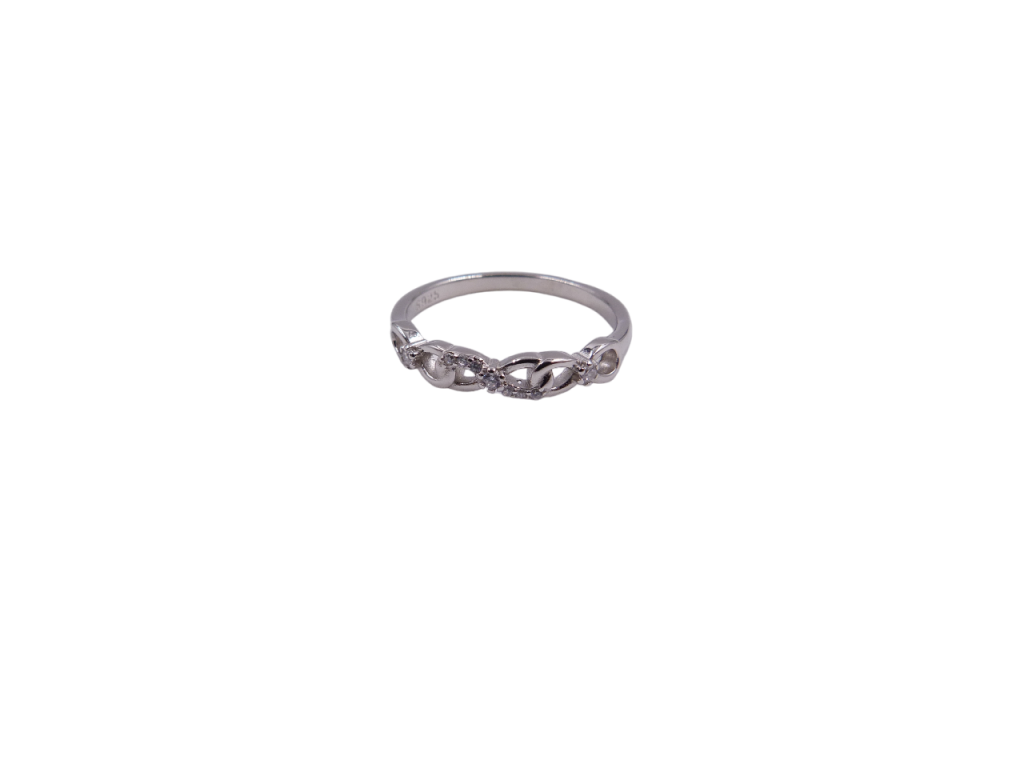 Anel de prata com zircónias. Peso 2 g.
