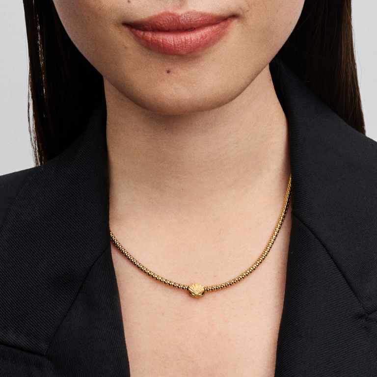 Ouve o chamado? A mudança vem em ondas. A nossa mini conta concha, com revestimento de ouro 14k, apresenta uma textura de ponta de diamante — um pequeno símbolo de descoberta, força e beleza oculta por baixo da superfície.