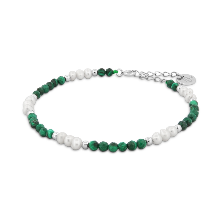 Pulseira de prata com Malaquite e Pérola de água doce.