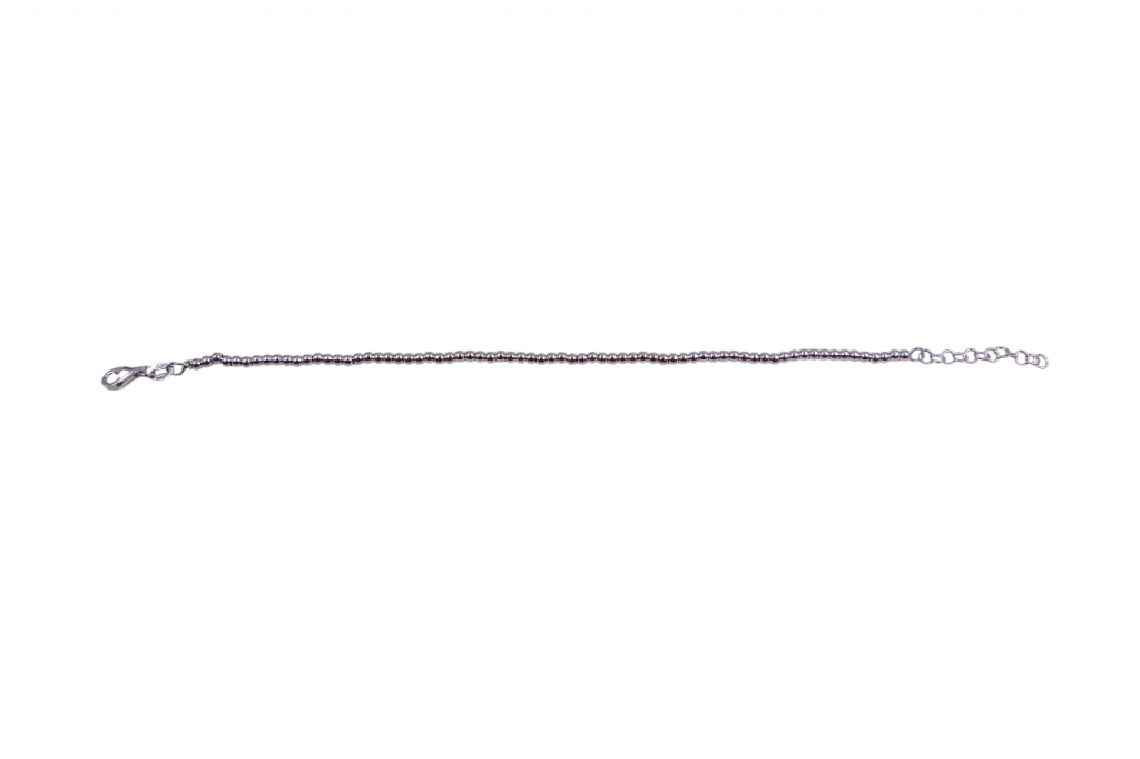 Mede 17 cm + 2.5 cm de extensão em prata.