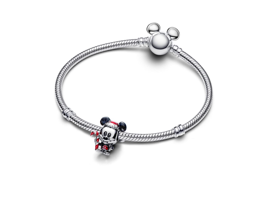 Entre no espírito festivo com o Rato Mickey da Disney. Com um chapéu do Pai Natal e segurando numa bengala doce, esta conta de prata apresenta esmalte vibrante e pormenores intrincados - um ícone festivo de alegria.