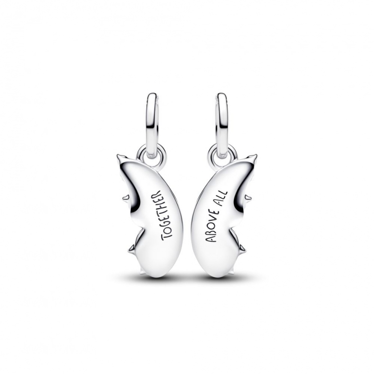 Criada para partilhar, desenhada para brilhar. Esta conta borboleta divisível de prata apresenta zircónias cintilantes e esmalte azul cintilante à frente, com a inscrição "TOGETHER ABOVE ALL" atrás de cada uma.