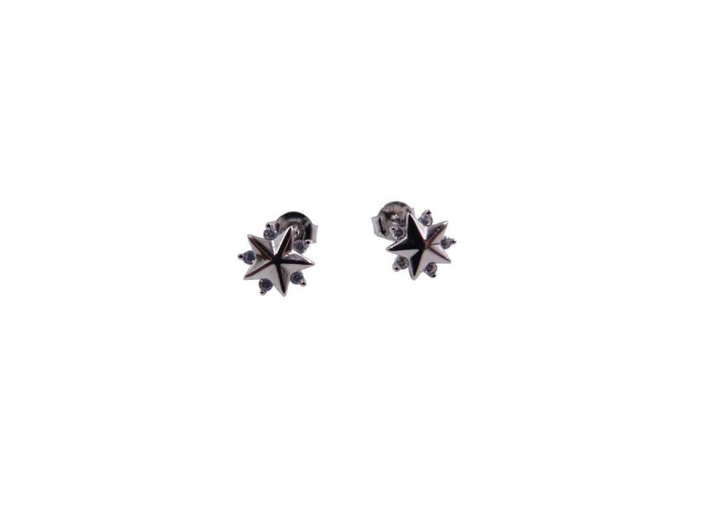 Brincos de prata com zircónias, de espigão.