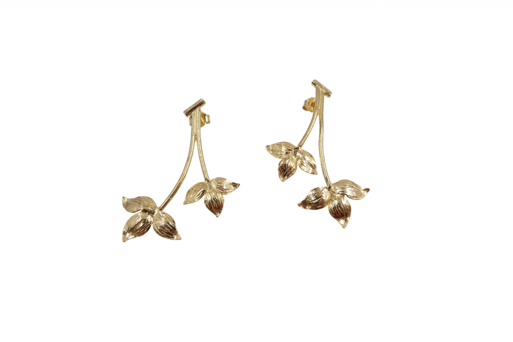 Brincos de prata dourada, de espigão.