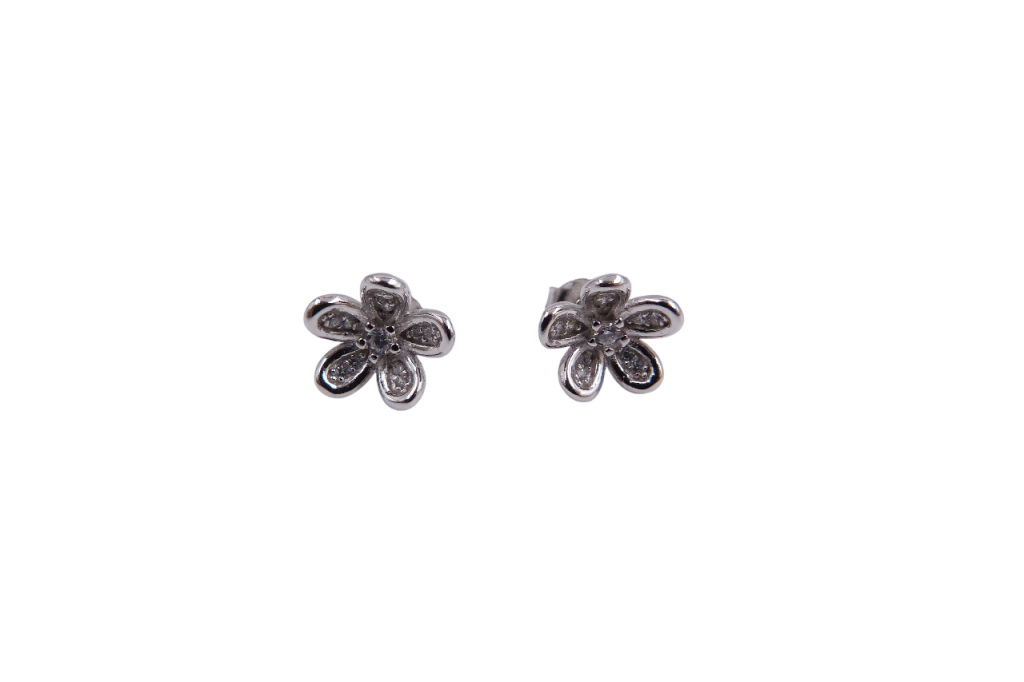 Brincos de prata com zircónias, de espigão.