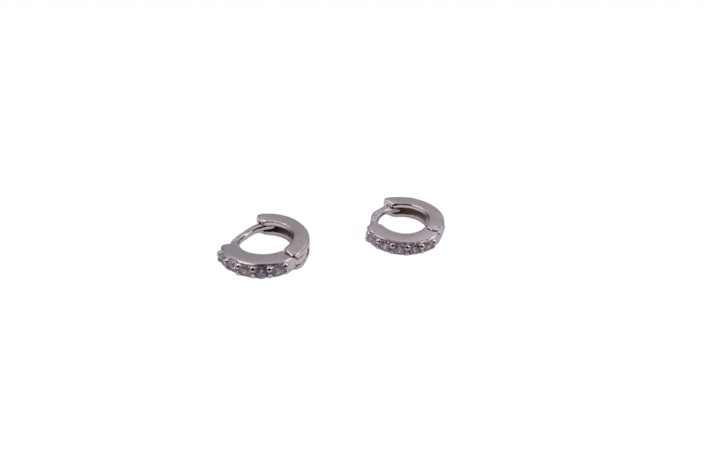 Brincos de prata com zircónias, argolas.