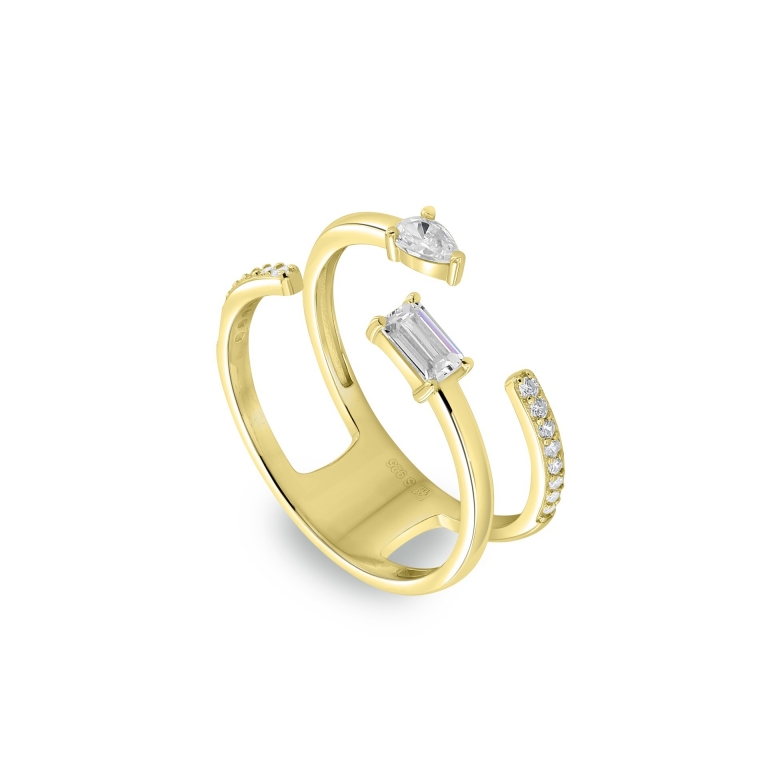 Anel em prata dourada com zircónias. Peso 2.3 g.