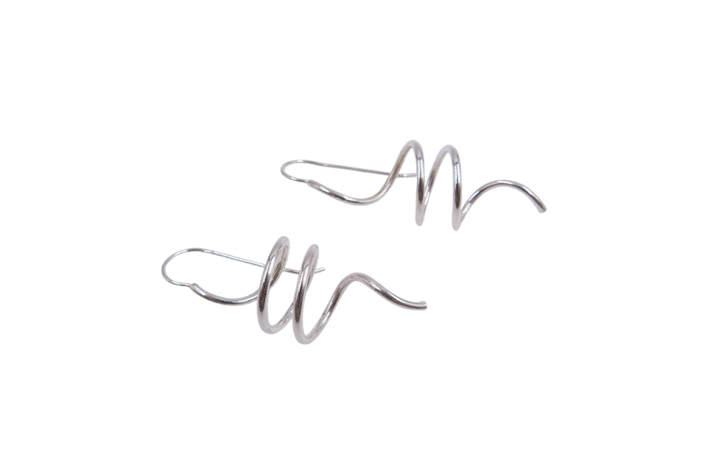Brincos de prata, de gancho.