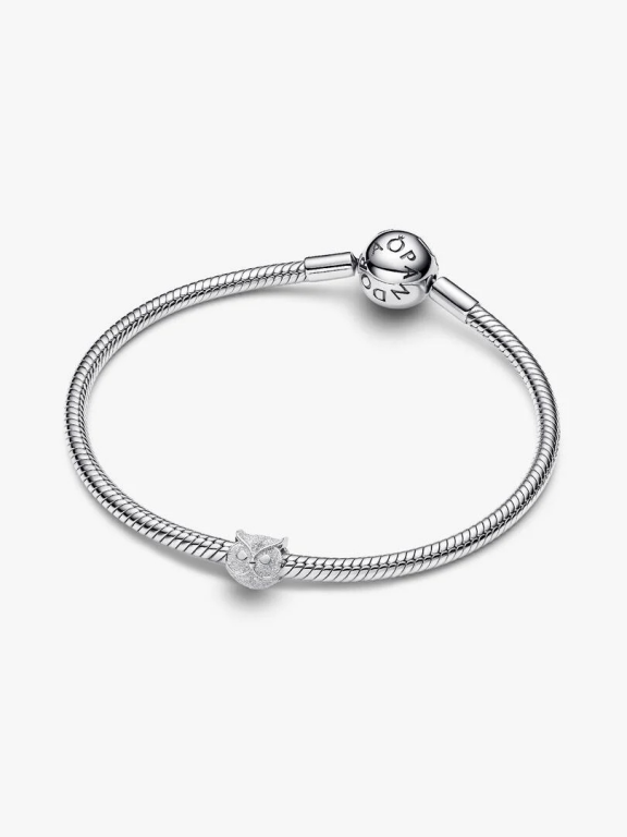 Maravilhosamente sábia. Esta mini conta coruja de prata de lei 925 apresenta uma textura de ponta de diamante, combinando conhecimento e intuição com elegância para o dia-a-dia.