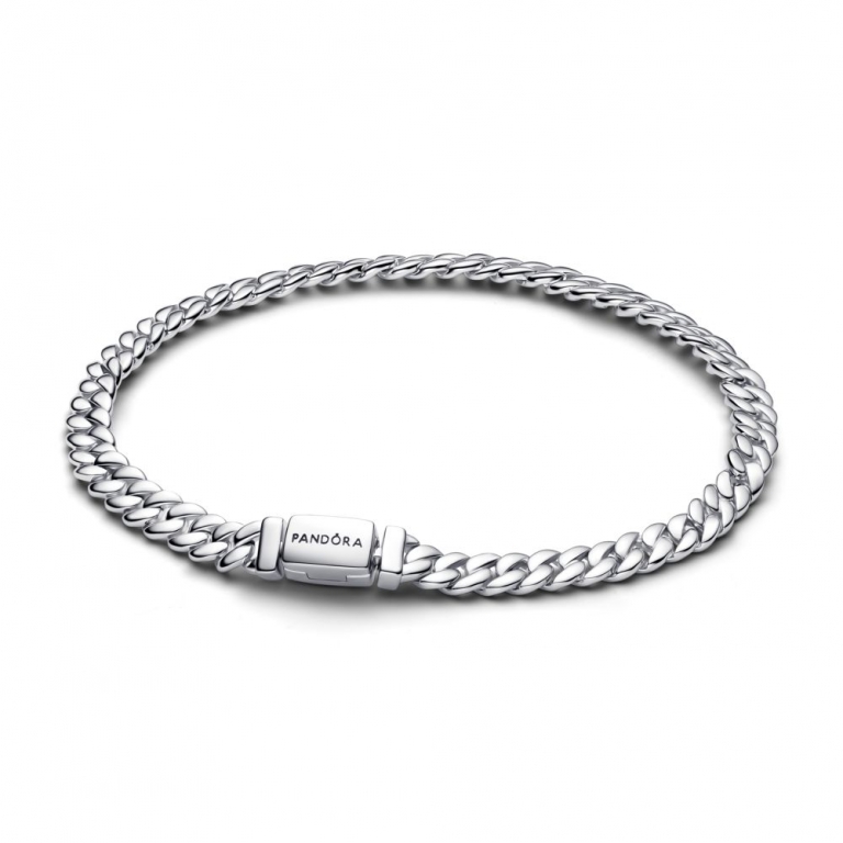 Eleve o seu look com esta Pulseira de Corrente Cubana. Em prata de lei 925, ambos os lados são polidos para um acabamento de alto brilho. Aperta com um fecho plano, gravado com o logótipo PANDORA.