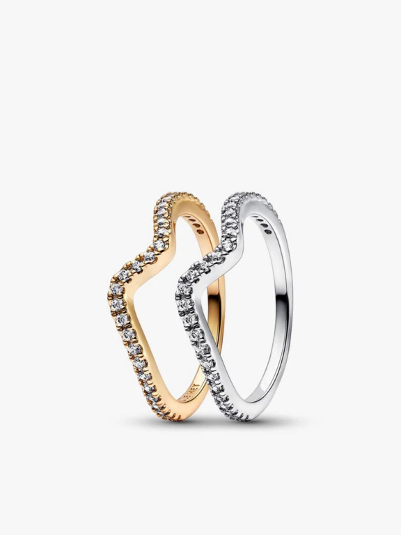 Este conjunto é composto pelo Anel Sparkling Wave em prata de lei 925 e pelo Anel Sparkling Wave com revestimento em ouro de 14k. Use-as sozinhas ou combinadas para um visual contemporâneo que irá adorar nos próximos anos.