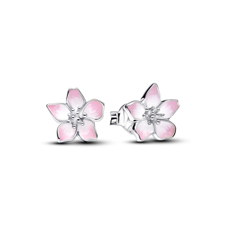 Floresça em beleza. Os nossos brincos stud em prata de lei 925, em forma de flor de cerejeira, apresentam esmalte aplicado à mão com um apontamento rosa - uma homenagem à sua renovação e crescimento.