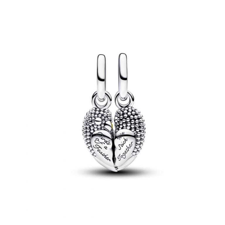 Partilhe o amor com a nossa conta divisível. Em prata com esmalte colorido, cada conta pendente apresenta uma gravação com significado: "Birds of a feather" numa e "We stick together" na outra.