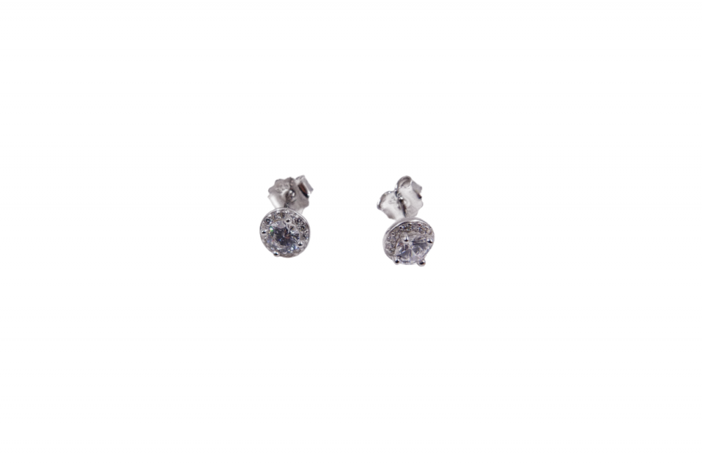 Brincos de prata com zircónias, de espigão.