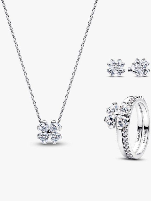 Conjunto de Presente Trevo da Sorte Brilhante Completo Pandora Timeless