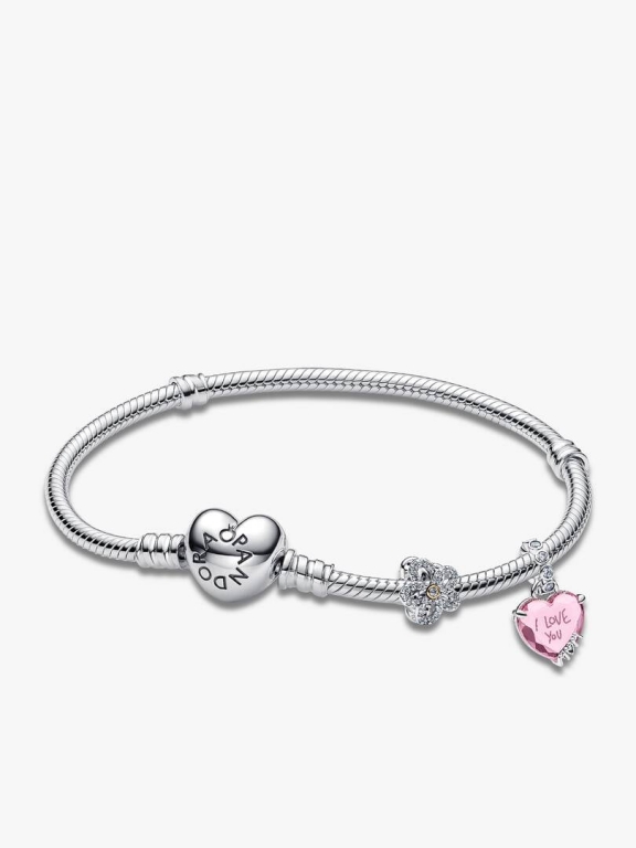 Conjunto de Presente Pulseira Coração Moments e Charms Flor & Mãe