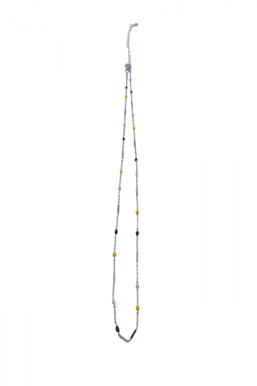 Mede 40 cm + 5.5 cm de extensão em prata.