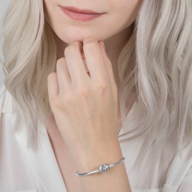 Ao longo do tempo, as suas peças de joalharia preferidas tornam-se parte de si e da sua história. A nossa bangle Pandora Moments é um suporte precioso e personalizado para a sua colecção de contas. O estilo minimalista de prata 925 apresenta um fecho em forma de coração gravado com o nosso logótipo, para uma abordagem subtil a esta tendência. Quer a use com ou sem contas, sozinha ou como parte de um look sobreposto, é uma peça memorável.