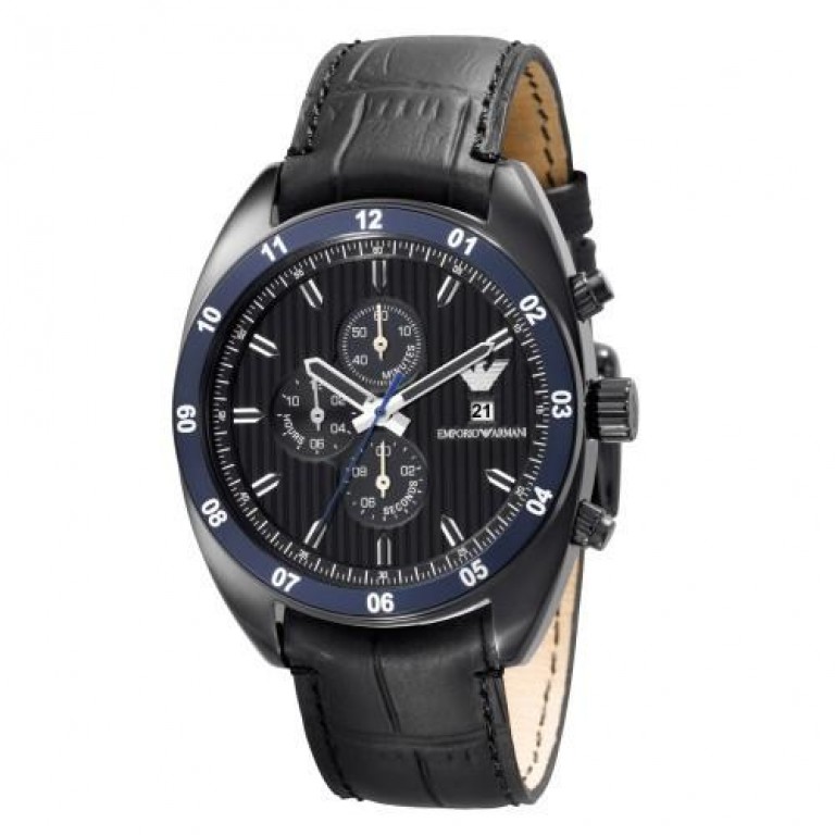 Relógio Armani AR5916, funcionamento a pilha, fundo preto e bracelete pele preta. Com calendário.