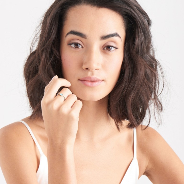 Anel Ania Haie em prata com pedra azul, ajustável.