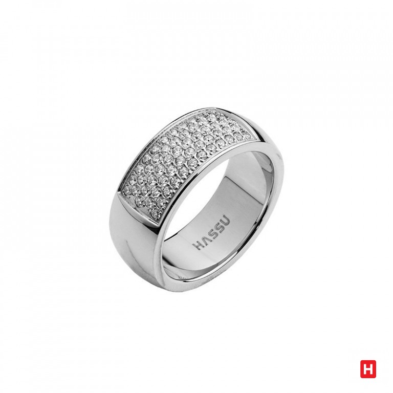 Anel em aço com zircónias, polido.