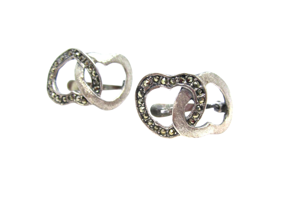 Brincos de prata com marcassites, fecho aro de escape.