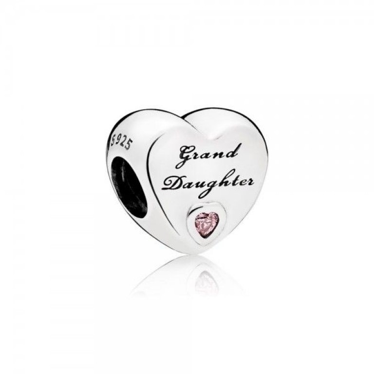 Conta Pandora de prata, zircónias rosa, Granddaughter (Neta)