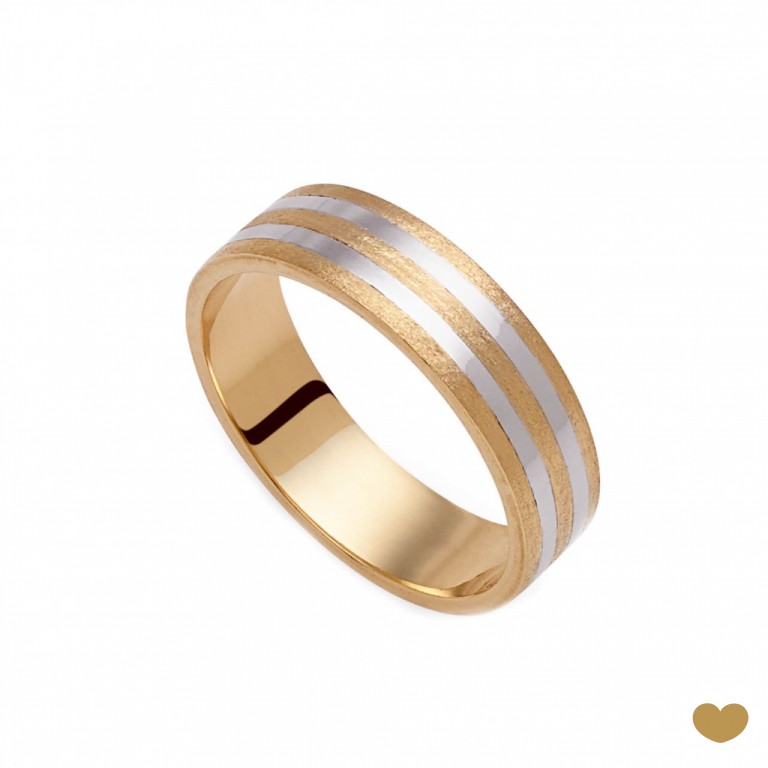 Aliança em ouro amarelo e branco de 9 quilates ou de 19 quilates com 5.3 mm de largura.