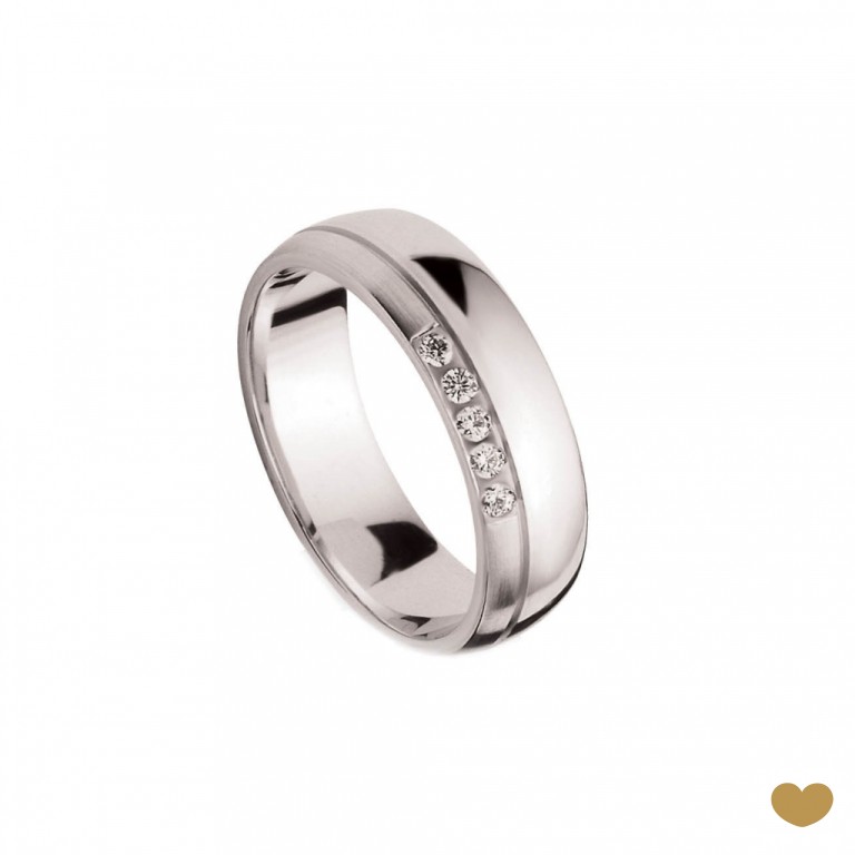 Aliança em ouro amarelo ou branco de 9 quilates ou de 19 quilates com 6.3 mm de largura, com zircónias.
