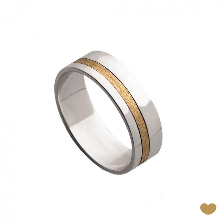 Aliança em ouro amarelo e branco de 9 quilates ou de 19 quilates com 6 mm de largura.