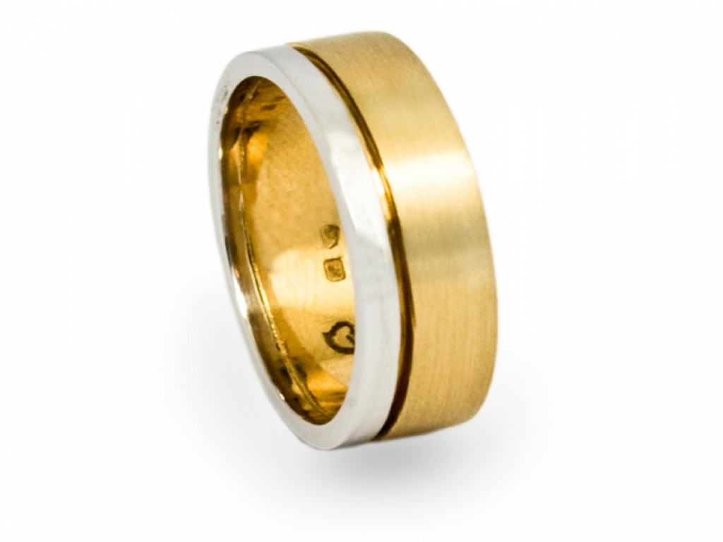 Aliança em ouro amarelo e branco de 9 quilates ou de 19 quilates com 7 mm de largura.