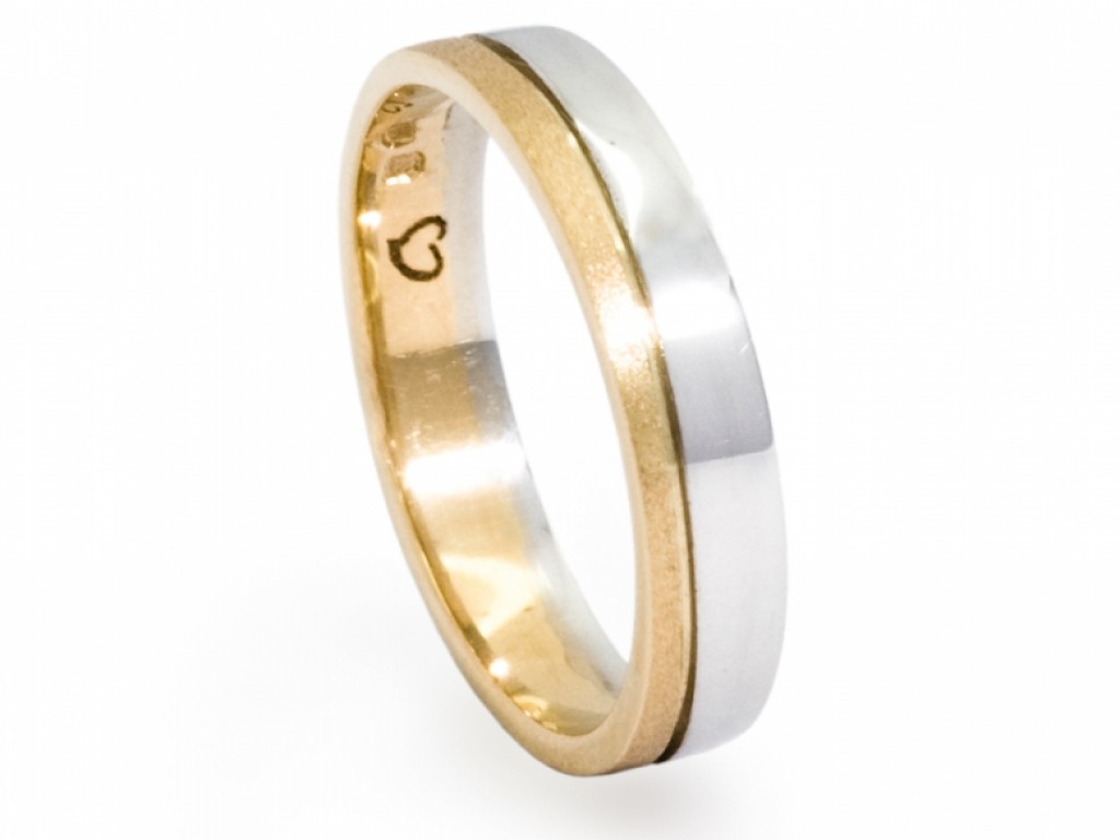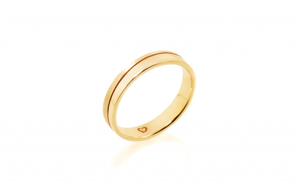 Aliança em ouro amarelo, rosa, branco ou bicolor de 9 quilates ou de 19 quilates com 4 mm de largura.