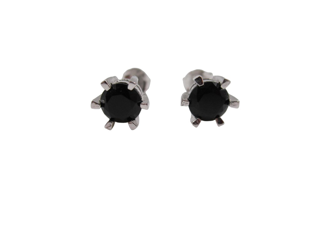 Brincos de prata com zircónias pretas, de espigão.