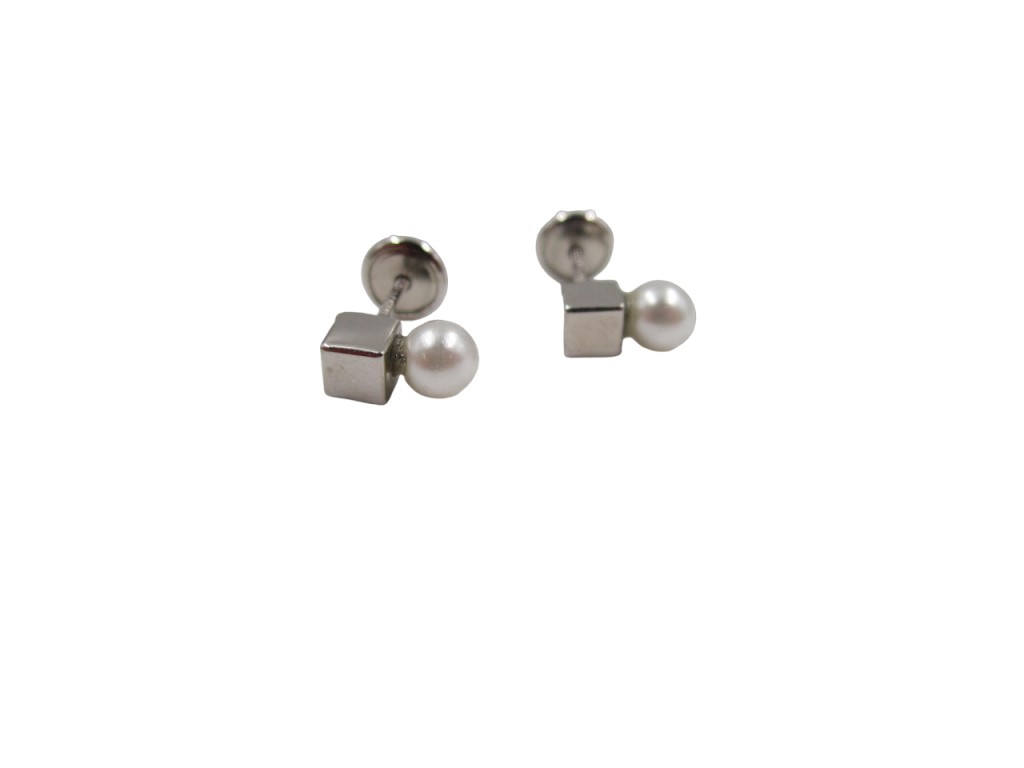 Brincos de prata com pérolas, de rosca.