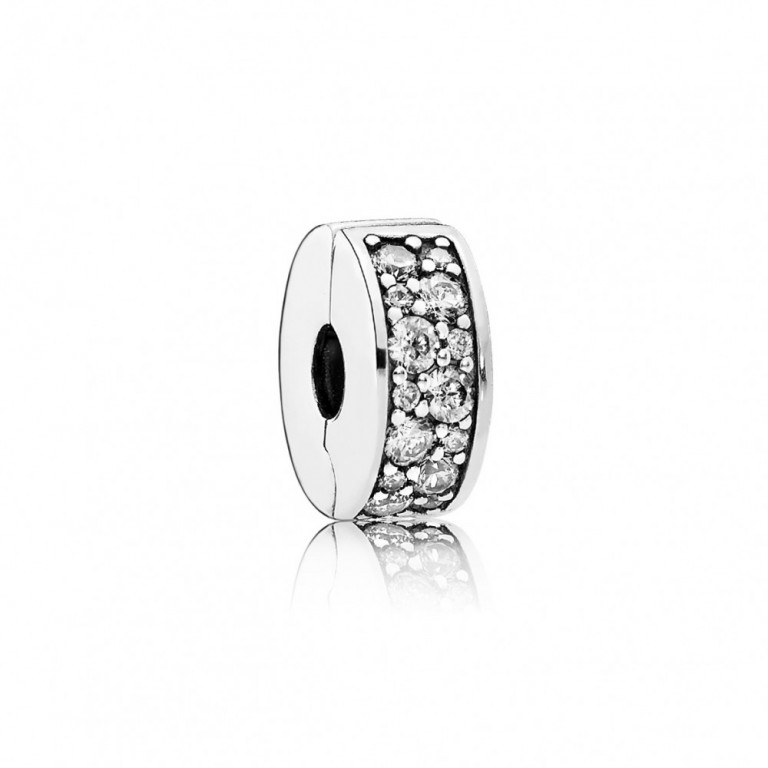 Acrescente um apontamento de brilho, fixando as contas Pandora com este clip brilhante, desenvolvido em prata 925 com zircónias. Para complementar a sua pulseira com estilo, os clips Pandora podem ser utilizados para criar secções e incluem um centro oculto de silicone que mantém as contas perfeitamente no lugar. Este estilo pavé pode ser conjugado com bangles, colares corrente snake e a maioria das pulseiras Pandora. Esta conta-clip apresenta um centro de silicone, não encaixando nas roscas (dois separadores de contas elevados). Esta conta pode ser colocada em qualquer outro local na pulseira.