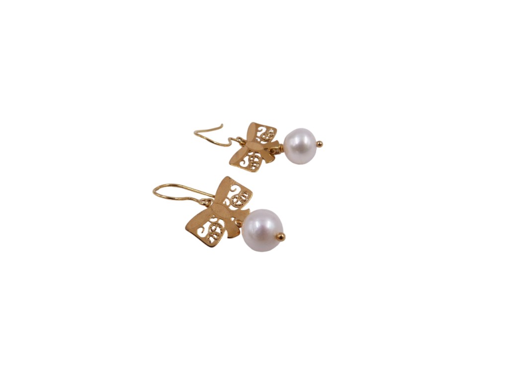 Brincos de ouro 19.2 quilates com pérolas, de gancho.