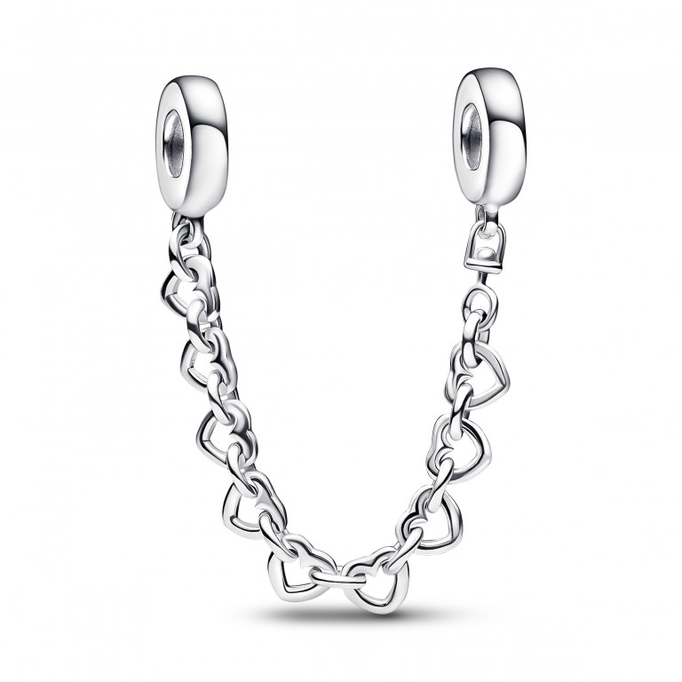 Proteja as suas contas com estilo, com a Corrente de Segurança Corações Interligados. Esta nova abordagem a um design clássico apresenta elos redondos e em forma de coração, em prata 925 polida, para duplicar o símbolo do amor. Use-a para seccionar a sua pulseira e permitir que as suas contas preferidas se destaquem.