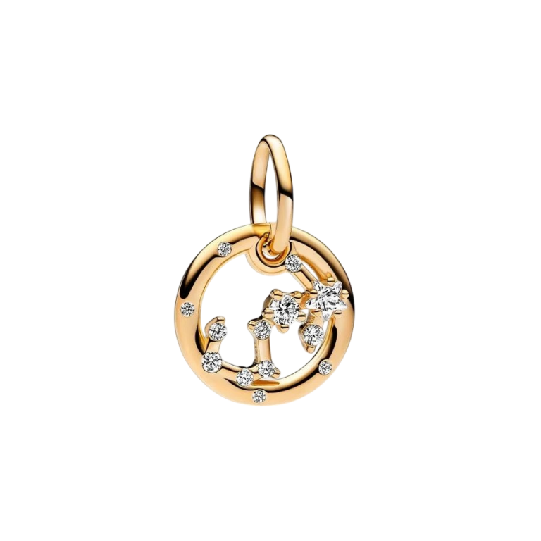 Deixe as estrelas guiarem o seu look com a Conta Pendente Zodíaco Escorpião da Pandora. Esta conta Escorpião é fabricada na nossa liga única revestida a ouro 14k, apresentando uma moldura exterior circular e zircónias transparentes brilhantes, bem como o formato do signo do Zodíaco Escorpião. A parte de trás da moldura está gravada com "Scorpio". Confiante, carismática e impulsiva, pode contar sempre com a Escorpião da sua vida para ser a alma da festa. Use esta conta com revestimento de ouro 14k como sinal da força do seu próprio signo ou ofereça-a como um presente de apreço à Escorpião da sua vida.