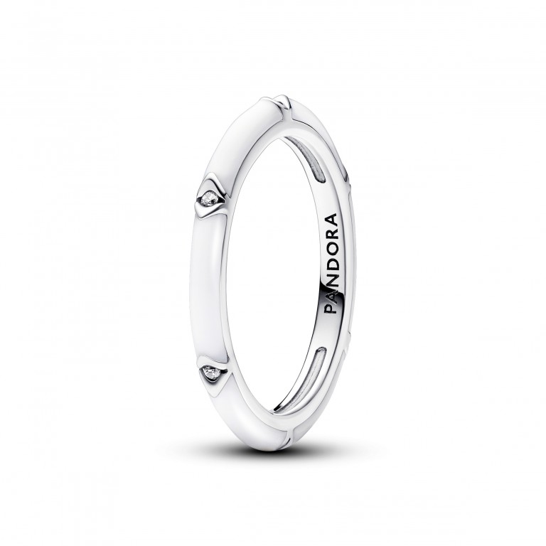 Acrescenta impacto ao teu look com o Anel Pandora ME Stones & Enamel. Este anel de prata apresenta esmalte branco brilhante pontuado por reentrâncias em forma de pirâmide invertida, cravadas com pedras cintilantes. Conjuga-o com outros anéis Pandora ME em diferentes texturas e cores de esmalte para criares o teu próprio conjunto personalizado.