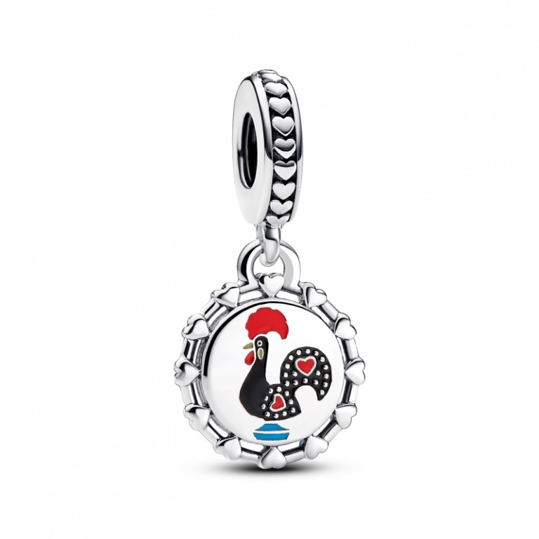 A conta pendente Galo Português apresenta o icónico Galo de Barcelos, simbolizando o espírito de Portugal. Fabricado em prata 925, o disco redondo apresenta um elaborado padrão de rendilhado com delicados corações a rodear o tema do galo e a gravação "PORTUGAL" do outro lado. O detalhe do esmalte dá vida ao galo, enquanto a fila de corações em relevo na argola acrescenta um toque especial. Perfeita para qualquer pulseira ou outro porta contas, esta peça reflecte o significado cultural e as memórias das férias. Combine-a com outras contas em prata 925 para criar um estilo especial e memorável.