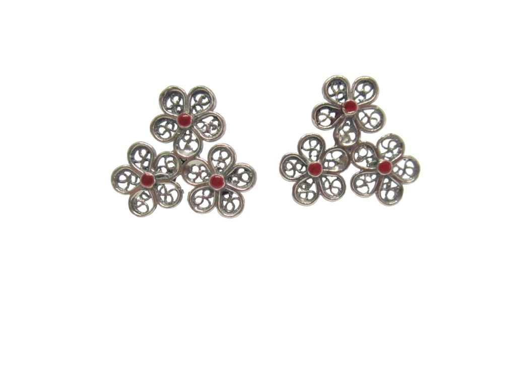 Brincos de prata em filigrana, de espigão.