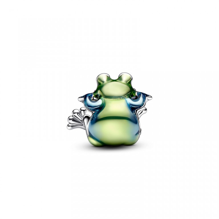 Acrescente um apontamento vibrante ao seu look com a Conta Rã Trepadora. Esta conta de prata apresenta um sapo em posição de escalada, com o corpo exterior coberto por esmalte verde e azul com efeito metálico. Elementos pensados e realistas incluem pés e mãos, boca sorridente e olhos com pormenores gravados em relevo. Ligeiramente mais pequeno do que outras contas, este pequeno sapo convida-a a brincar com o seu estilo - e a celebrar uma das criaturas incríveis da natureza.